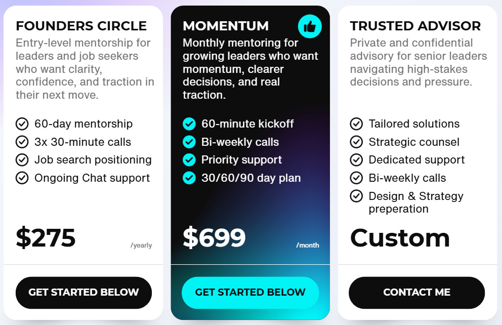My entry-level mentorship tier inside Leader Unlock. For leaders and job seekers who want clarity, confidence, and traction in their next move.